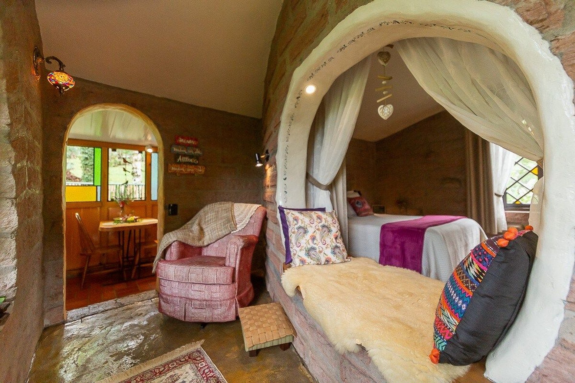 O espaço está bem no limite da cidade, há 8 min do centro de Gramado, contém quatro pequenas casas com interior e etecnica construtiva individual. Estas se acomodam com conforto de modo que cada qual tem seu jardim particular. Pode ser aprazível o entorno, a trílha, a horta a estufa de flores e os pequenos lagos, além do silêncio quando da cidade se sentir cansado.